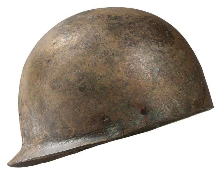 Casque formé par une calotte hémisphérique simple avec un couvre nuque court. De chaque côté du casque sont percés des trous qui accueillaient un système d’attache. Il s’agit d’une forme dérivée d’un modèle étrusco-italique à bouton sommital. Ce type de casque a connu un véritable succès à travers l’Europe Occidentale pour des raisons économiques (léger, solide, simple et efficace).