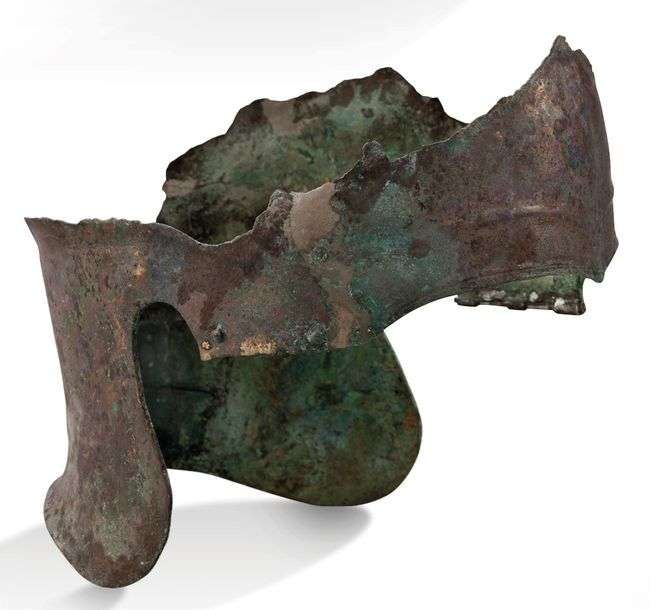CASQUE CHALCIDIEN FRAGMENTAIRE. THRACES OU ITALIE MÉRIDIONALE, DÉBUT DU IVE S. AV. J.-C.