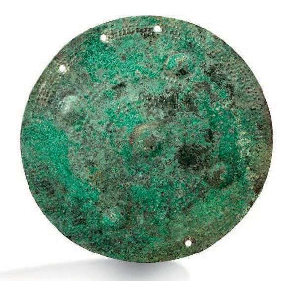 AN ITALIC BRONZE PHALERA WITH CENTRAL UMBO. CIRCA 4TH CENT B.C. OR EARLIER