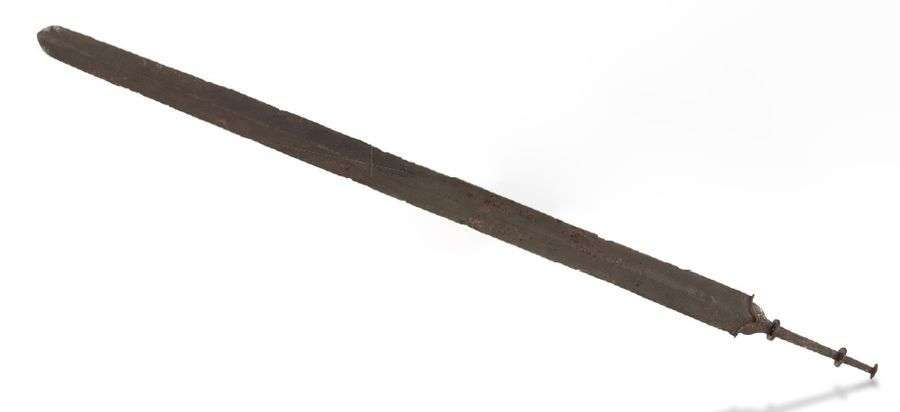 A FINE IRON CELTIC LONG SWORD. MIDDLE LA TENE PERIOD CIRCA 3RD - 2ND CENT B.C.