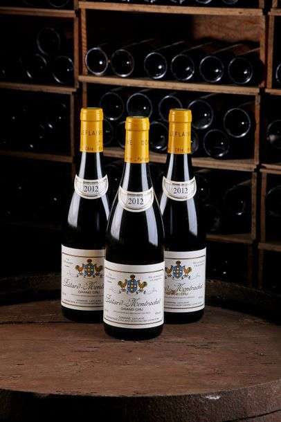3 Blles Bâtard-Montrachet GC - 2012 - Domaine Leflaive - état/ condition: Les étiquettes sont légèrement marquées par les calages de la caisse bois d'origine. / Labels are slightly marked by wooden case.