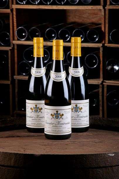 3 Blles Chevalier-Montrachet GC - 2008 - Domaine Leflaive - état/ condition: Une étiquette légèrement marquée. Une bouteille avec un niveau à 1 cm sous le bouchon. / One slightly marked label. One bottle shows a level at 1cm below base of cork.