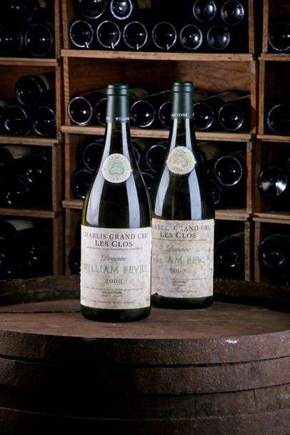 2 Mag Chablis GC Les Clos - 2008 - Domaine William Fèvre - état/ condition: Etiquettes touchées par l'humidité et râpées. / Damp affected and rubbed labels.