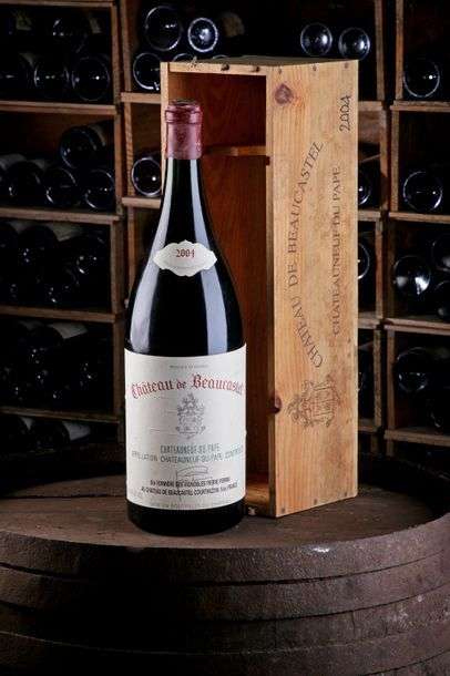 1 Jéro Châteauneuf-du-Pape - 2004 - Château de Beaucastel - état/ condition: Etiquette très légèrement marquée. Offert en caisse bois d'origine. / Very slightly marked label. Offered in an original wooden case.