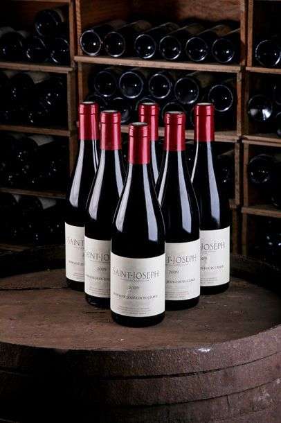6 Blles Saint-Joseph - 2009 - Domaine Jean-Louis Chave - état/ condition: Deux étiquettes touchées par l'humidité et tachées. / Two damp affected and stained labels.
