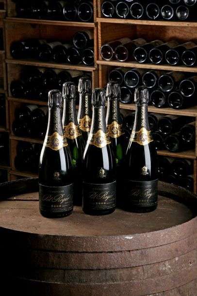 6 Blles Champagne - 2006 - Pol Roger - état/ condition: Coiffes et étiquettes sont très légèrement griffées et leurs dorures s'effritent. / Foils and labels are very slightly nicked and show slightly flaking gilded paint.