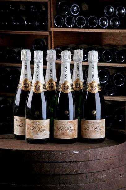 6 Blles Champagne - x - Pol Roger - état/ condition: Etiquettes très tachées et légèrement abîmées. / Very stained and slightly damaged labels.