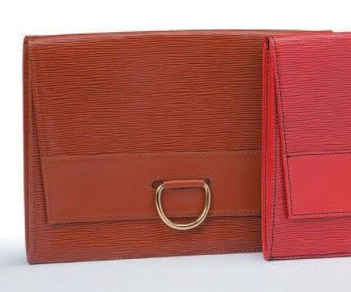 Pochette enveloppe en cuir épi marron.