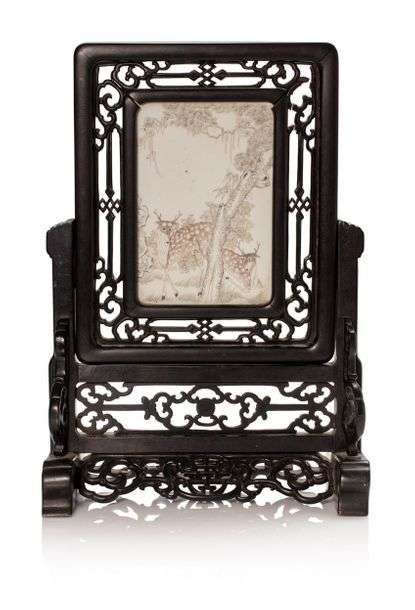 Ecran de table en porcelaine à décor polychrome de daims.