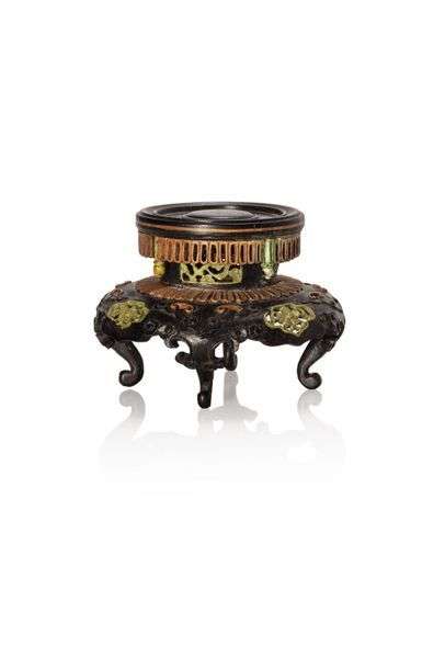 Socle en Hongmu finement sculpté de chauves-souris stylisées et incrustées d'ivoire teinté vert.