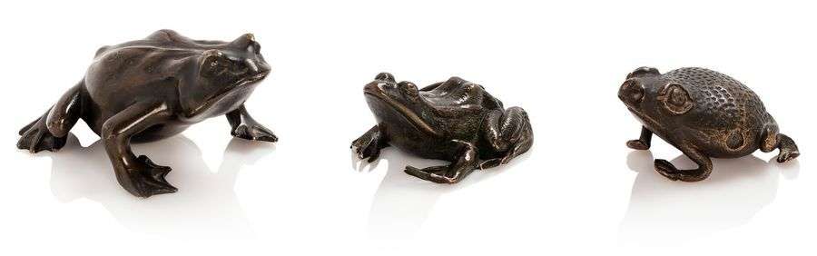 中国十九世纪 铜蟾蜍镇纸一组三只