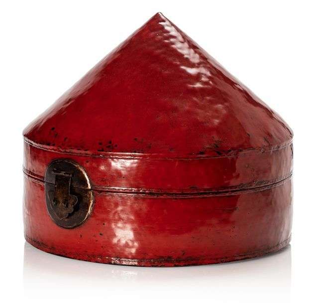 Boîte à chapeau en laque rouge