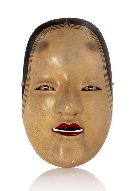 Masque de Nô représentant ko-omote, en bois laqué et peint. (Petites lacunes de laque)