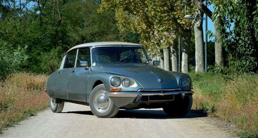 Présentée en 1955, la DS Citroën avait la lourde tâche de succéder à la Traction Avant. Elle frappa le public par une ligne inédite et criante de modernisme, chef d’œuvre de Flaminio Bertoni, elle étonnait aussi par sa technique et sa conception : suspension hydropneumatique, direction assistée, freins à disque, boite semi-automatique pour ne citer que quelques exemples. Vingt ans de carrière et des modèles variés allant de la décapotable élégante à la version break utilitaire, elle brillera également en compétition en remportant notamment le Rallye Monte-Carlo en 1958. Véritable mythe et symbole du génie industriel français de l’époque, la DS est l’une des voitures les plus collectionnées au monde. La D Super remplace l’ID20 en 1969, elle est équipée d’une boîte de vitesses manuelle à 5 rapports et de la direction assistée. Elle possède les phares « goutte d’eau » ajoutés à la deuxième phase du modèle en 1967, ainsi que le nouveau tableau de bord avec comptetours, sorti en septembre 1969. Les poignées de porte ainsi que le volant seront remplacés en 1971.