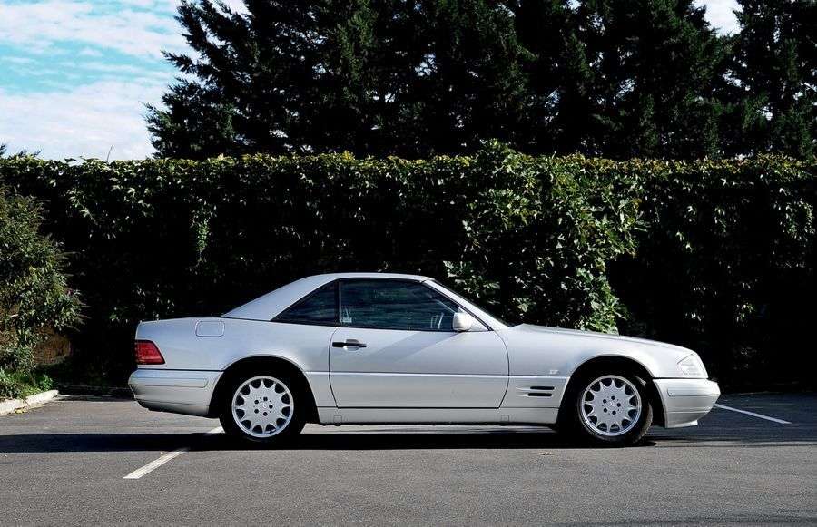 Viendra ensuite la Pagode en 1963 (W 113), signée par le designer français Paul Bracq puis un nouveau SL (W 107) en 1971, qui connaîtra une carrière exceptionnellement longue. En mars 1989, à l’occasion du Salon de Genève, Mercedes présente un tout nouveau modèle, la R 129, qui se caractérise par la modernité de ses lignes à la fois anguleuses et aérodynamiques. Sur cette génération de SL, quelques innovations révolutionnaires sont proposées en série, comme la capote en toile entièrement électrique (un hard-top était aussi disponible), l’ABS et les doubles airbags et même des arceaux escamotables en cas de retournement. Un amortissement piloté associé à un correcteur automatique d’assiette était proposé également. Bien sûr, la dotation est pléthorique et en rapport avec les 585 300 F demandés à l’époque (300 SL), puisqu’elle offre une climatisation automatique, une direction assistée à réglages électriques, des sièges en cuir à réglages électriques, des jantes alu de 15 pouces, des lave-phares, la peinture métallisée, une radio Becker avec 10 HP, des rétroviseurs électriques dégivrants, des vitres électriques et le Tempomat (sur BVA). En juillet 1998, l’auto connaît un discret restylage avec des clignotants avant non plus oranges mais blancs, optiques modifiées et les boucliers redessinés et à cette occasion, la gamme s’enrichit d’une nouvelle version appelée SL 280 de 204 chevaux.