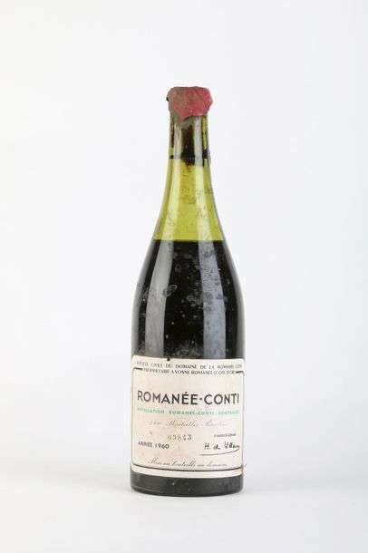 1 B ROMANÉE CONTI (Grand cru) 6 cm| e.l.a| capsule estampée cire en partie détruite mais présente au sommet| bouchon estampée| n° 3843 - 1960 - Domaine de la Romanée Conti