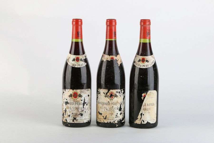 3 B CLOS-VOUGEOT (Grand Cru) e.q.i. avec 1 millésime partiellement lisible "198?"| collerettes Bouchard Père & Fils abimées| 2 c.s. - 1988 - Bouchard Père & Fils