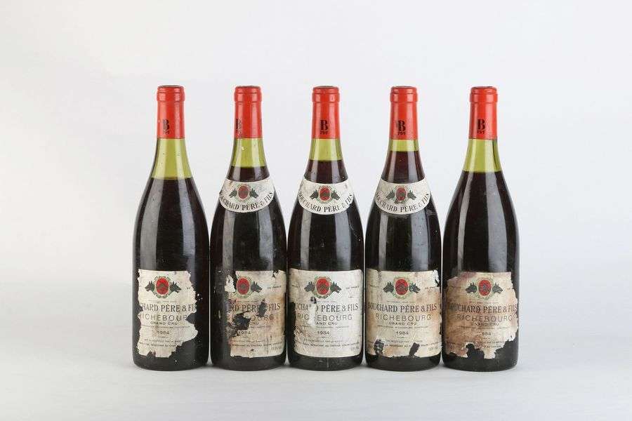 5 B RICHEBOURG (Grand Cru) 1 à 2,8| 1 à 3,3 et 1 à 4 cm| e.q.i| 3 collerettes Bouchard Père & Fils abimées et 2 absentes| 1 c.s. - 1984 - Bouchard Père & Fils