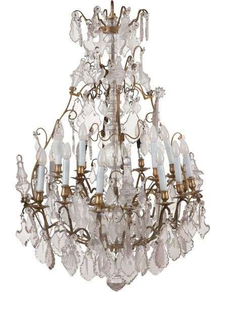 IMPORTANT LUSTRE en cristal et bronze doré à vingt-quatre bras de lumière, les pendeloques en forme de poires, pointes de diamant et étoiles.