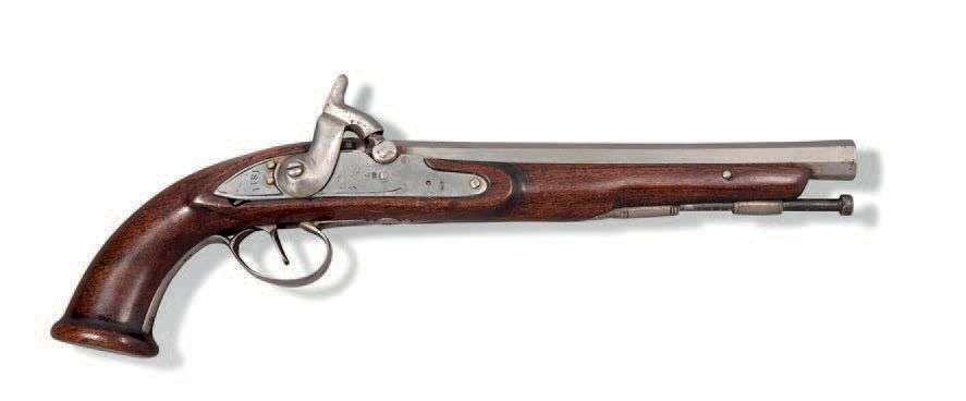 Réplique artisanale indienne de pistolet à silex, transformé à percussion, de type anglais.