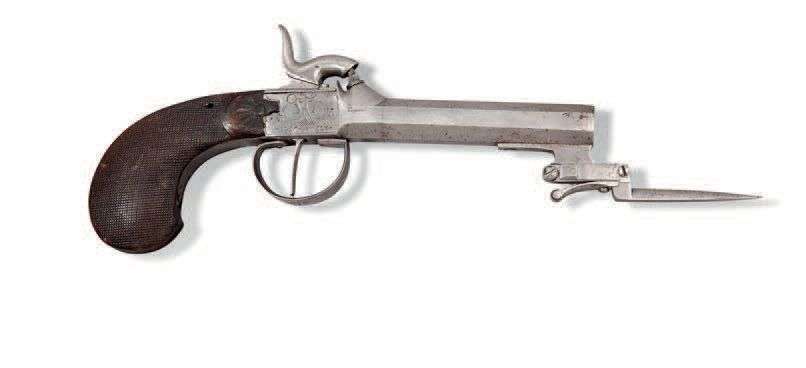 Canon à pans poinçonné "ELG". La lame repliable, dite lançante, sous le canon, avec système de libération par pression sur le pontet.
