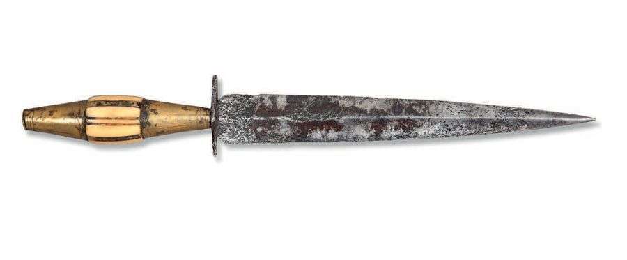 Fusée de forme losangique en laiton et os cannelé. Garde en fer losangique a quillon droit.