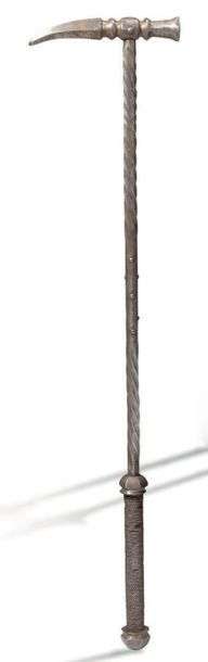Pommeau à quatre pans. Poignée ronde torsadée, incrusté d'un filigrane en fer.