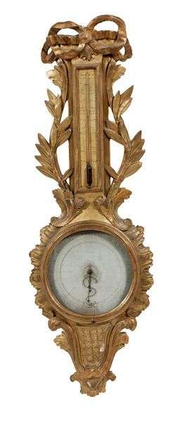 BAROMÈTRE THERMOMÈTRE en bois mouluré sculpté et doré fabriqué