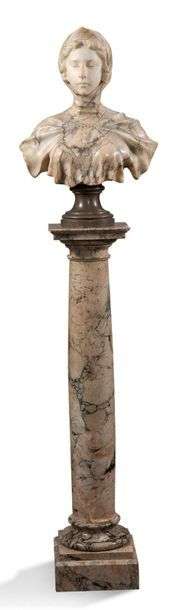 Buste de jeune femme au voile en marbre blanc veiné gris