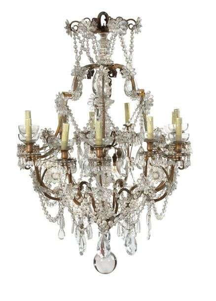 IMPORTANT LUSTRE à douze bras de lumière à structure en métal ornés de fle