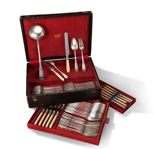 PARTIE DE MÉNAGÈRE en argent chiffré «DK» comprenant: