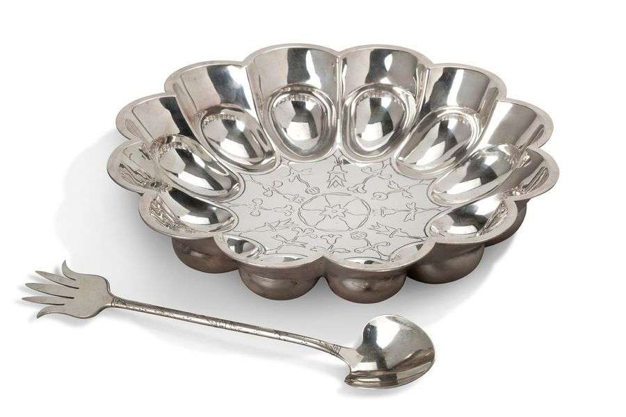 COUPE POLYLOBÉE CHRISTOFLE en métal argenté ornée au centre d'une rosace e