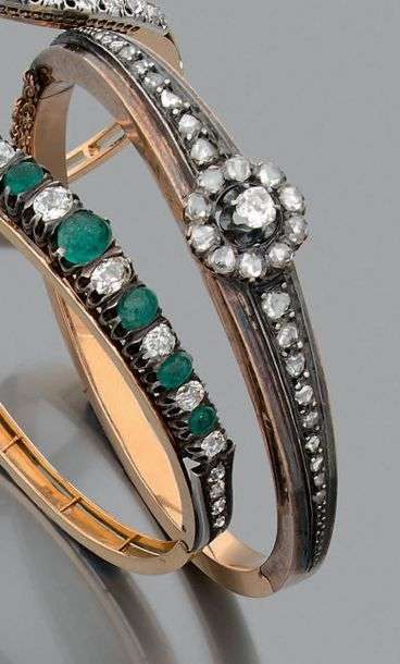 Diamants taillés en roses, diamants taille ancienne, or 18K (750) ET ARGENT (<800)