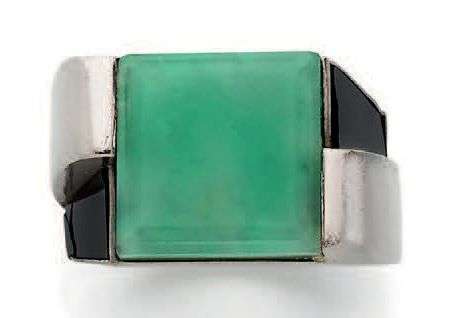 Bague onyx, jadéite et or gris 18K (750).