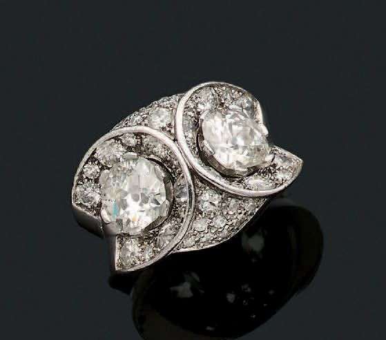 Deux diamants de taille ancienne, pavage de diamants ronds, platine (950).