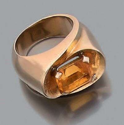 A gold and citrine ring. In the taste of TEMPLIER creation.