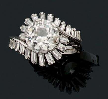 Diamant de taille ancienne, diamants baguettes, platine (950)
