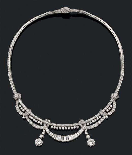A diamond and platinum necklace.