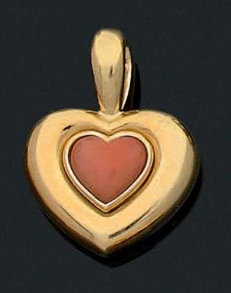Pendentif "coeur" corail et or jaune 18K (750). Signé et numéroté.