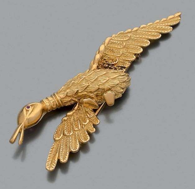 A gold clip by MAUBOUSSIN. Signed, numbered and stamped.