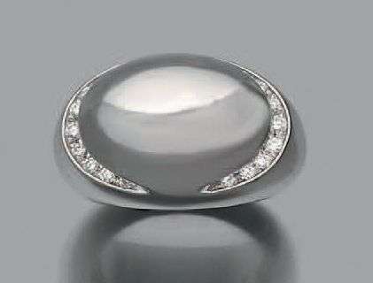 Bague "dome" diamants et or gris 18k (750). Signée.