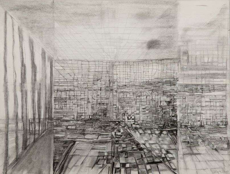 Tempera et fusain sur papier Ingres, signé et daté en bas à droite