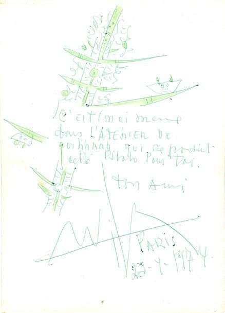 Dessin et dédicace, signée et datée en bas à droite au dos d'une photographie argentique représentant l'artiste dans son atelier