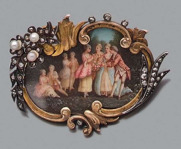 Broche "miniature scène galante"
