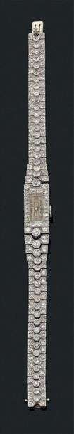 A diamond, platinum and gold wristwhatch.
