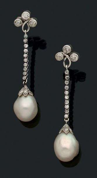 Perles fines en goutte, diamants et platine (950).
