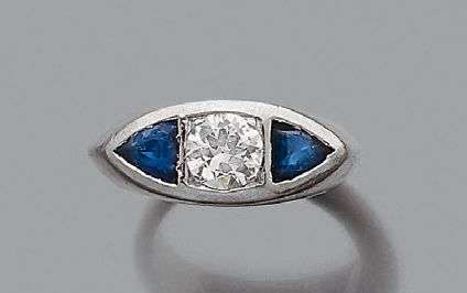 Diamant demi taille épaulé de saphirs en triangle, platine (850).