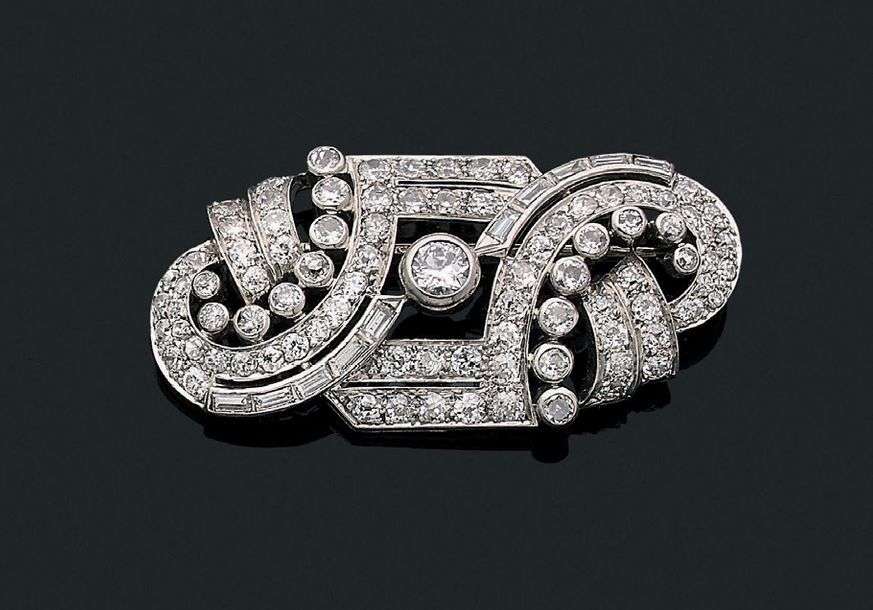 A diamond, gold and platinum brooch.