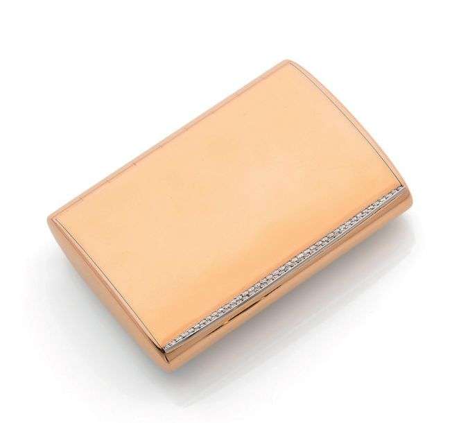 Poudrier, diamants ronds, or 18K (750) et platine (850).