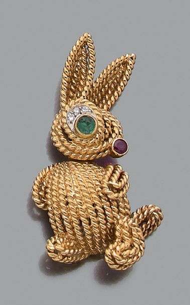 An emerald, ruby, diamond and gold brooch by Van Cleef & Arpels, stamped, numbered and signed.